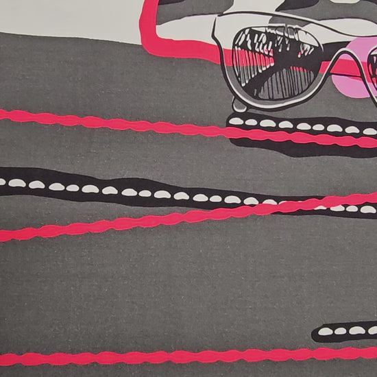 Dieser Viskosejersey mit modernem Sonnenbrillenmotiv ist ideal für auffällige Kleidungsstücke.